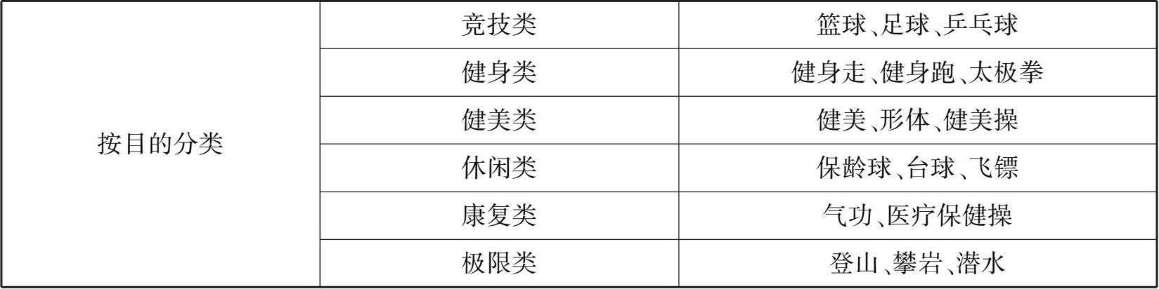 3. 体育锻炼内容的分类 ( 表 4-2)