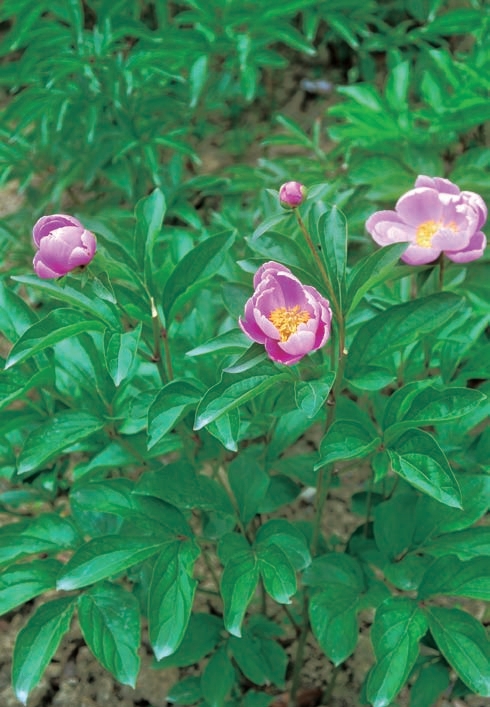 生产上多采用种芽繁殖,此法可缩短白芍生长周期。白芍在收获时,剪除芦头上的根,选择粗大、芽头饱满、无病虫的芦头,按芦头大小切成2~4块,每块应有粗壮的芽孢2~3个作种苗。种芽以粗壮饱满有两个芽苞的为好,种芽下留2cm长的芦头,随切随栽。栽种白芍实行垄作,株行距40cm×60cm,每穴栽一个芽头,切面向下,芽头向上,使芽头低于地面3~5cm。栽后覆土压实,再培土5~10cm高,以保墒越冬。每亩保苗2 800株,每亩需种芽量85~100kg。