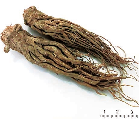 【性状】 本品略呈圆柱形,下部有支根3~5条或更多,长15~25cm。表面黄棕色至棕褐色,具纵皱纹和横长皮孔样突起。根头(归头)直径1.5~4cm,具环纹,上端圆钝,或具数个明显突出的根茎痕,有紫色或黄绿色的茎和叶鞘的残基;主根(归身)表面凹凸不平;支根(归尾)直径0.3~1cm,上粗下细,多扭曲,有少数须根痕。质柔韧,断面黄白色或淡黄棕色,皮部厚,有裂隙和多数棕色点状分泌腔,木部色较淡,形成层环黄棕色。有浓郁的香气,味甘、辛、微苦。