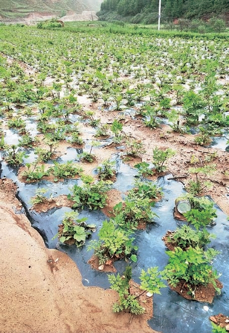 栽地整理之后,即可栽种。每窝栽种幼苗2~3株,株行距20~30cm,栽植深度13cm左右。每亩需幼苗7~9kg。