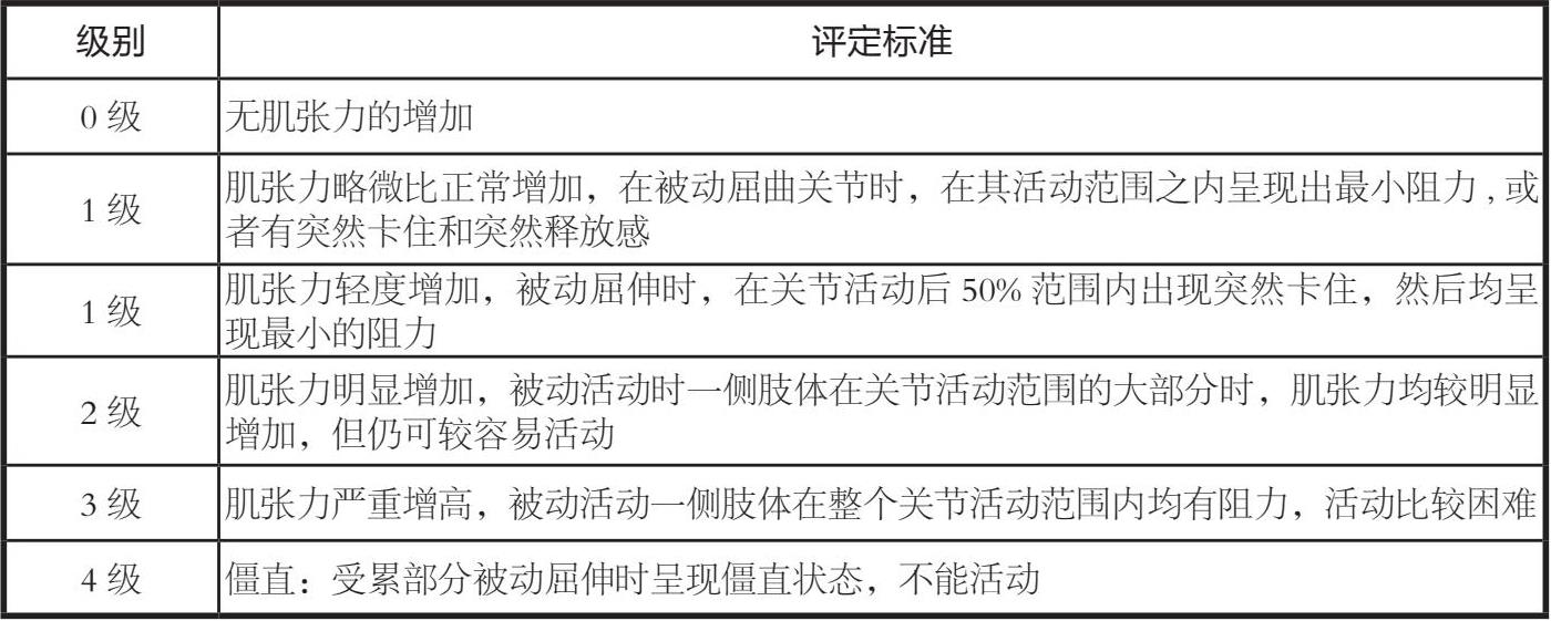 表3-2 改良Ashworth分级评定标准(MAS)