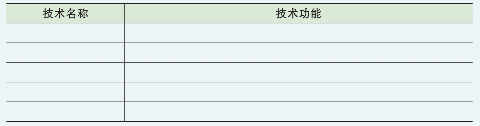 请你查阅资料,了解智能网联汽车关键共性技术有哪些,并填写下方表格。