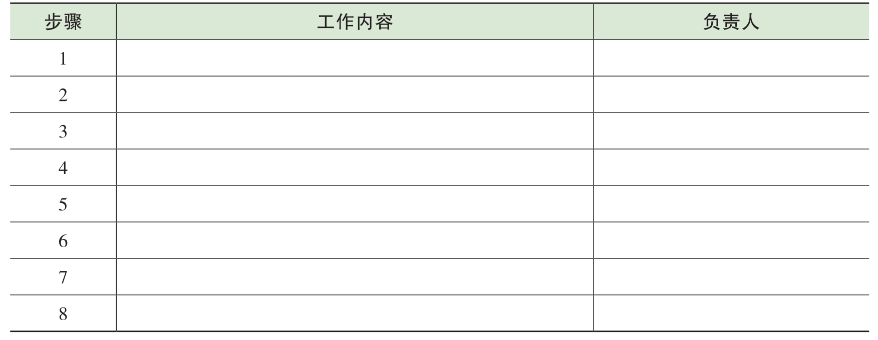 按照前面所了解的知识内容和小组内部讨论的结果,制定工作方案,包括资料查阅渠道的落实、车型情况的了解等,并填写工作计划表,见表1-2。