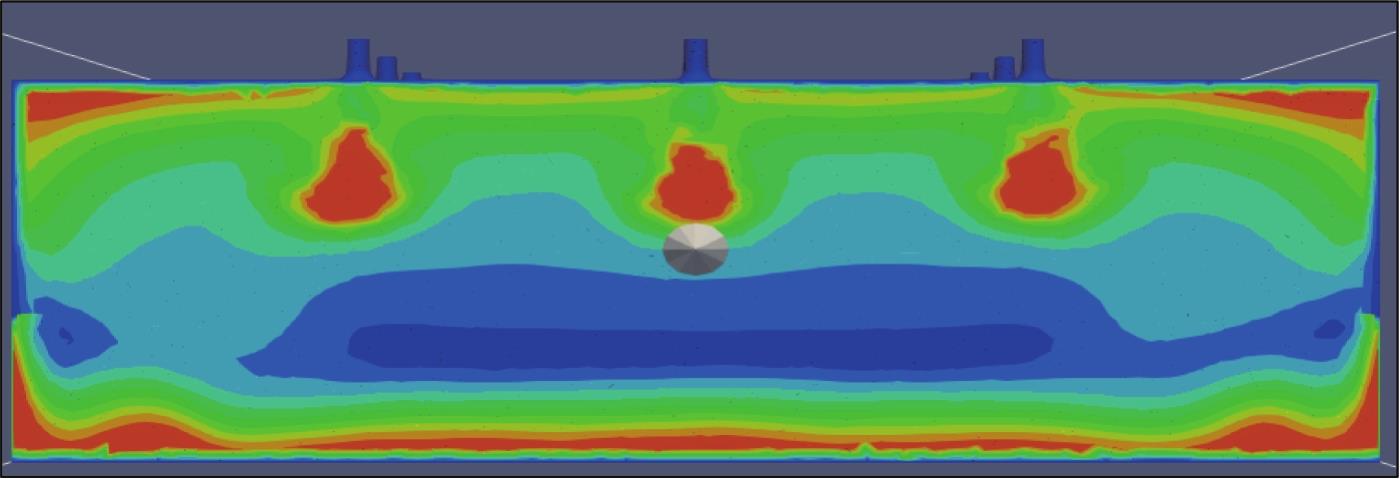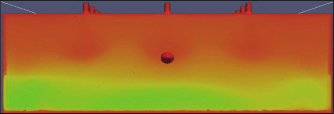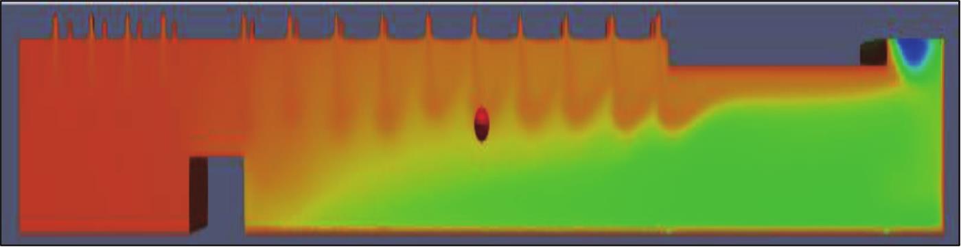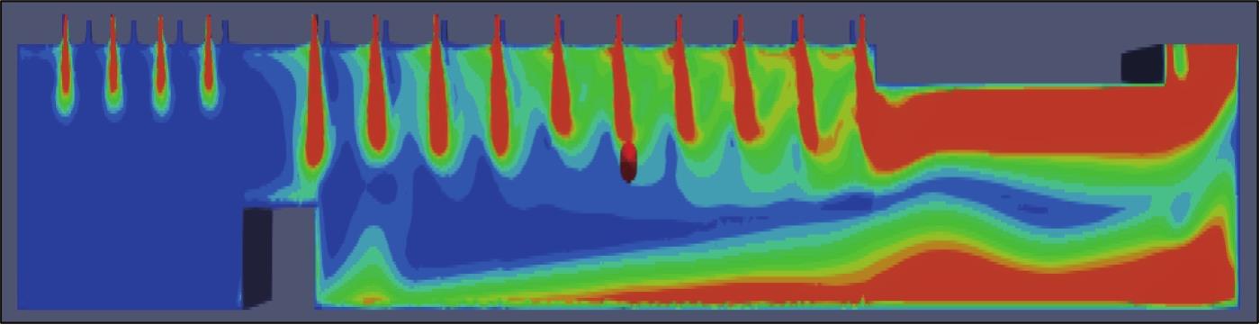 图10-10 加热炉长从左向右14.5m处截面的速度分布