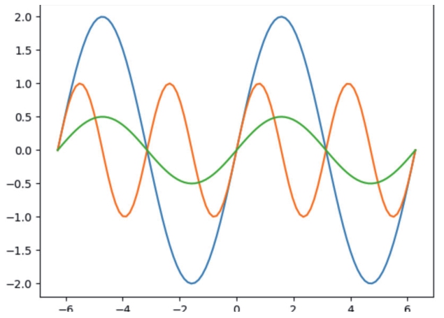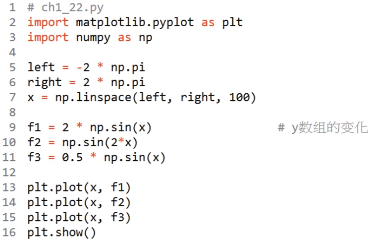 程序实例ch1_22.py: 使用系统默认颜色,绘制不同波形的应用。