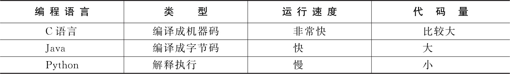 表1—1 Python与Java、C语言的对比