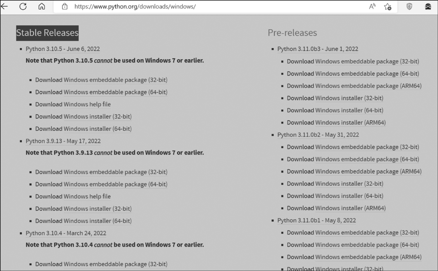 第3个版本是2008年发布的Python 3.0版本,截至2022年6月,Python 3.0稳定版本已经更新到Python 3.10.5,Python 3.0内测版已经更新到Python 3.11.0b3。Python 2.x版本和Python 3.x版本差异比较大,所以Python 2.x版本的代码不能直接在Python 3.x环境下运行。如果要Python 2.x版本的代码能够在Python 3.x版本的环境下运行,则需要修改源代码。针对这一棘手问题,Python官方提供了一个将Python 2.x代码转换为Python 3.x代码的小工具2to3.py。2to3.py文件就保存在Python安装路径下的Tools\Scripts子目录中,具体的用法将在后面的章节中论述。虽然Python 3早在2008年就发布了,但Python的大客户Facebook、Instagram、Dropbox等公司,花费了数年的时间才完成代码的迁移,即便如此,Python官方还是坚持推出全新的Python 3.x版本,坚持优雅、简单、明确的设计理念,舍弃与时代、行业发展不符合的部分。这本书对于Python的论述,主要选用Python 3.x版本,如图1—2所示。