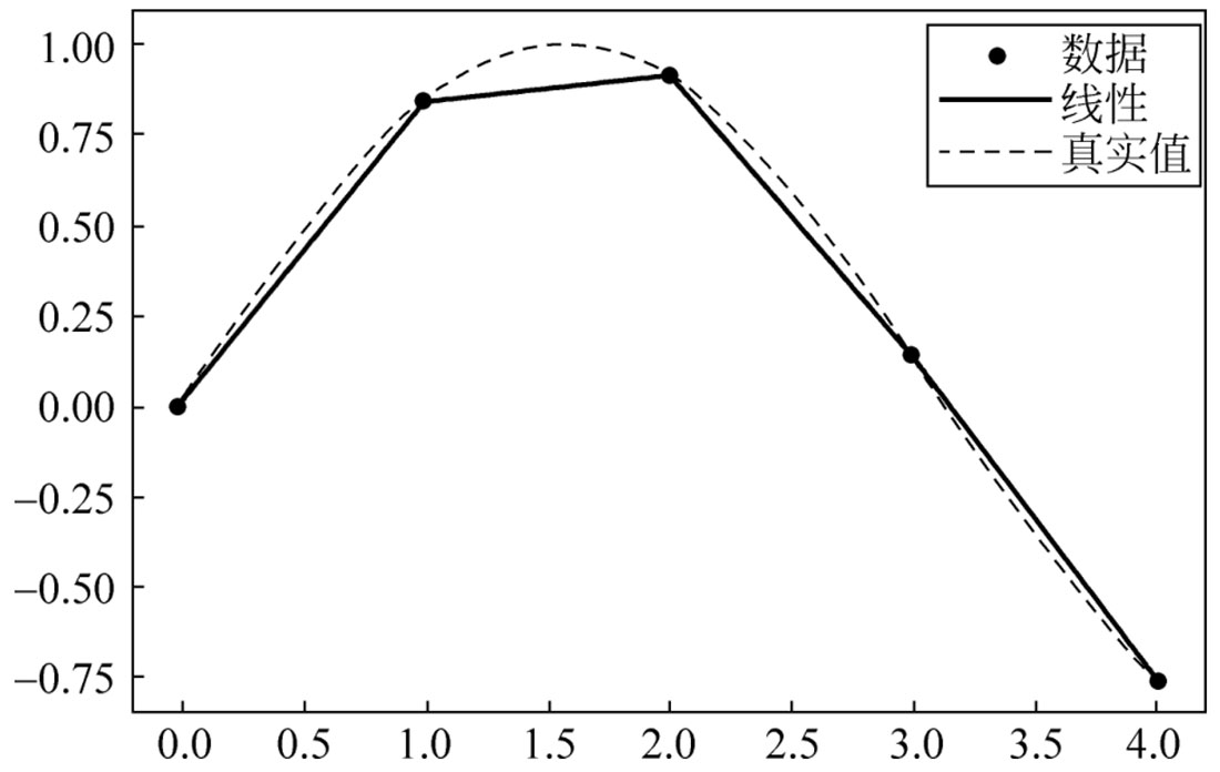 分段线性插值的基本原理就是把相邻的两个节点连起来,从而实现节点两两之间的线性插值,将这条分段的折线记作 I n ( x i )= y i ,且 I n ( x i )在每个小区间[ x i , x i +1 ]上都是线性函数。