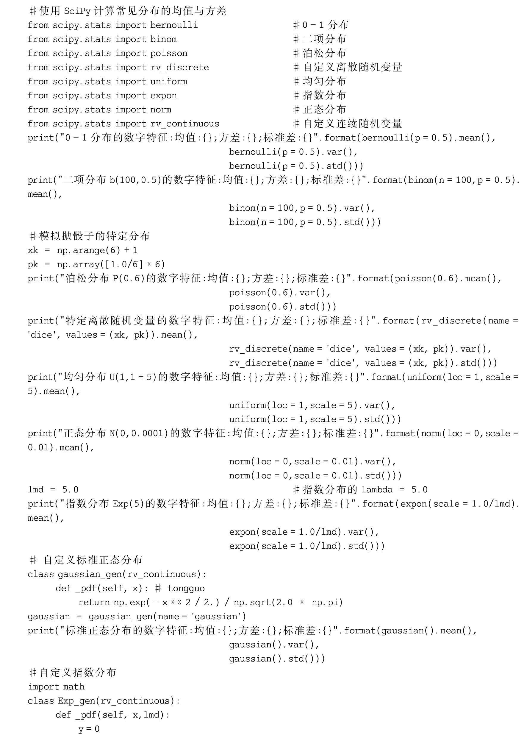 【例2-42】 演示各种密度分布函数以及相应的期望与方差。