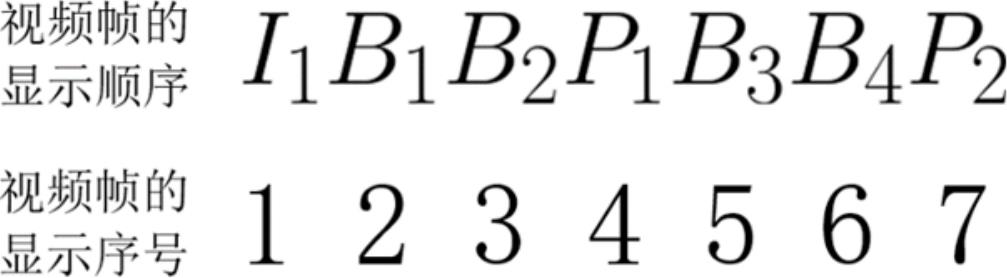 FFmpeg把数据包的解压时间称作DTS(Decompression Timestamp,解压时间戳),对应AVPacket结构的dts字段;把数据包的显示时间称作PTS(Presentation Timestamp,显示时间戳),对应AVPacket结构的pts字段。对于音频帧来说,它的DTS和PTS数值保持一致,没有区别。对于视频帧来说,它的DTS和PTS的数值很可能不一样。因为视频帧分为I帧、P帧、B帧三类,其中I帧属于关键帧,也叫作帧内编码图像(Intra-Coded Picture),它包含一幅完整的图像信息;P帧属于前向预测编码图像(Predictive-Coded Picture),它需要参考前方的I帧或者P帧;B帧属于双向预测内插编码图像(Bi-Directionally Predicted Picture),它需要同时参考前方和后方的I帧或者P帧。举个例子,图3-1是一段录像的视频帧显示序列。