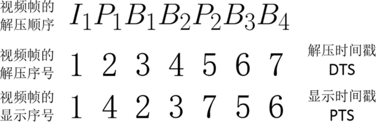 至此,得到了视频帧的两种队列,一种是解压过程中的解压队列,该队列中的各帧时间戳被称作解压时间戳(DTS);另一种是显示过程中的显示队列,该队列中的各帧时间戳被称作显示时间戳(PTS)。不过,开发者只需关注PTS,因为什么时候采用B帧由编解码器自行判断,所以DTS也由编解码器来设定。
