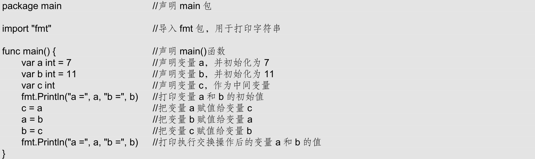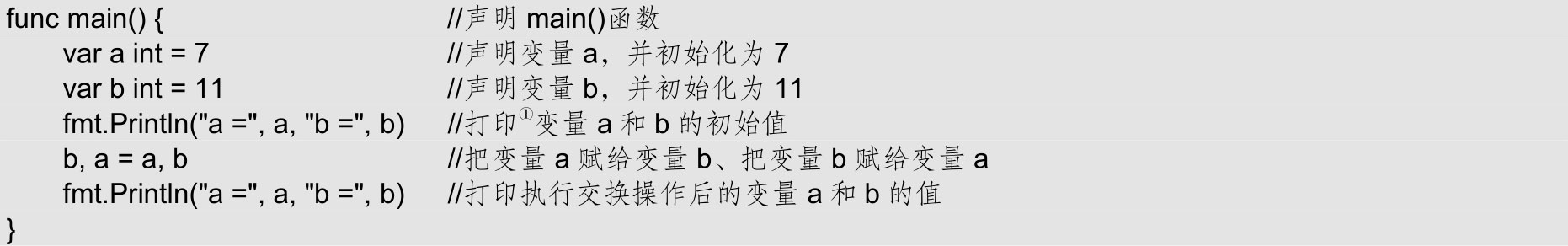 在Go语言中,可以使用“多重赋值”的特性交换两个变量的值。下面使用“多重赋值”的特性修改例3.1。关键代码如下。