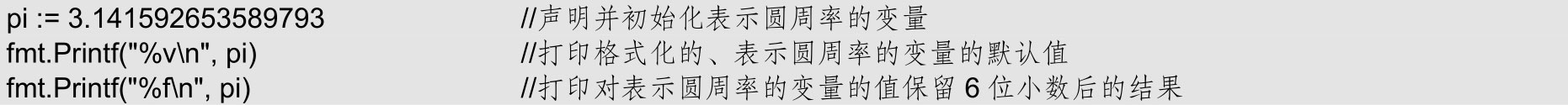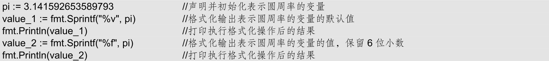 例如,首先声明并初始化表示圆周率的变量,这个变量的初始值为3.141592653589793;然后分别使用字符串输出格式“%v”和“%f”格式化表示圆周率的变量的值;最后打印执行格式化操作后的结果。代码如下。