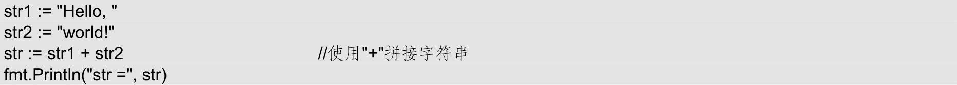 例如,使用“+”把字符串“Hello, ”和“world!”拼接在一起。示例代码如下。