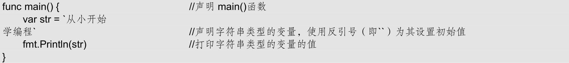 例如,首先使用var关键字声明一个字符串类型的变量,然后使用反引号(即``)把这个变量的初始值设置为“从小开始学编程”,最后打印这个变量的值。代码如下。