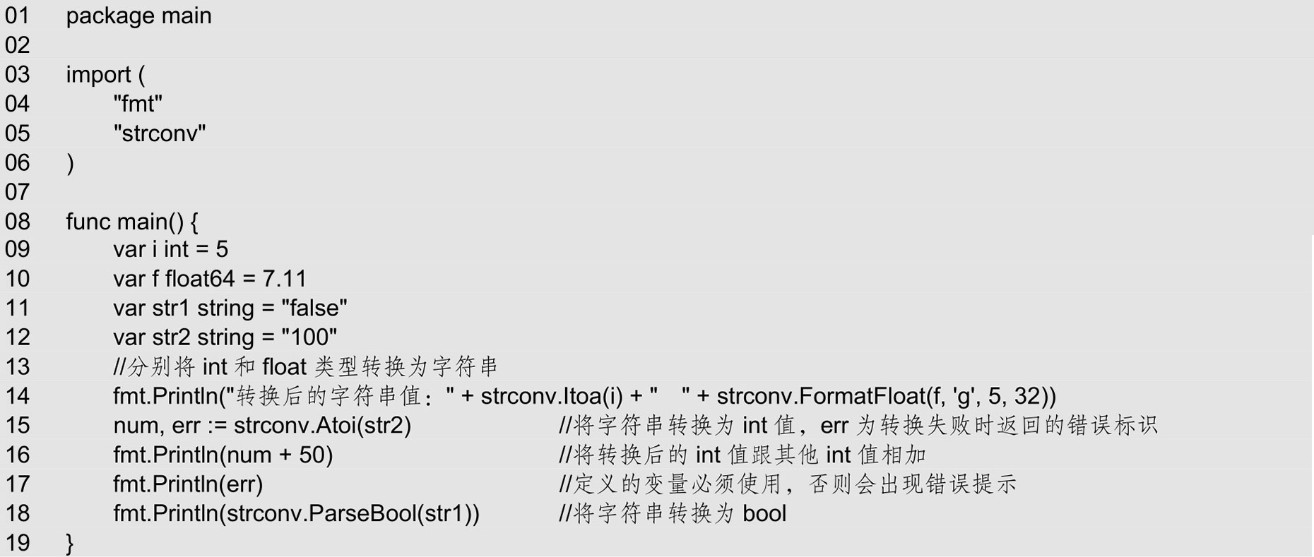 注意,上面的方法只适用于数值类型之间的转换,如果在字符串和数值类型之间进行转换,则需要使用strconv.Itoa()、strconv.Atoi()、Parse系列函数或Format系列函数,其中,strconv.Itoa()函数用于将整型转换为字符串;strconv.Atoi()函数用于将字符串转换为整型;Parse系列函数用于将字符串转换为给定类型的值,常用的有ParseBool()、ParseInt()、ParseUint()和ParseFloat()等;Format系列函数用于将给定类型数据格式化为字符串类型,常用的有FormatBool()、FormatInt()、FormatUint()和FormatFloat()等。