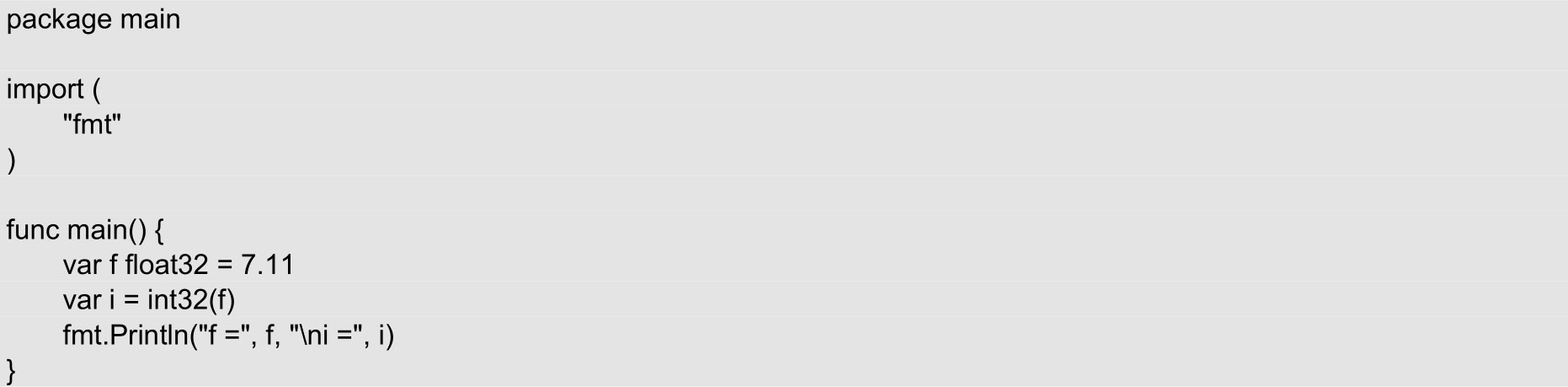 例如,定义值为7.11的float32类型变量f后,再把变量f的类型显式转换为int32类型,而后得到类型转换后的变量i。代码如下。