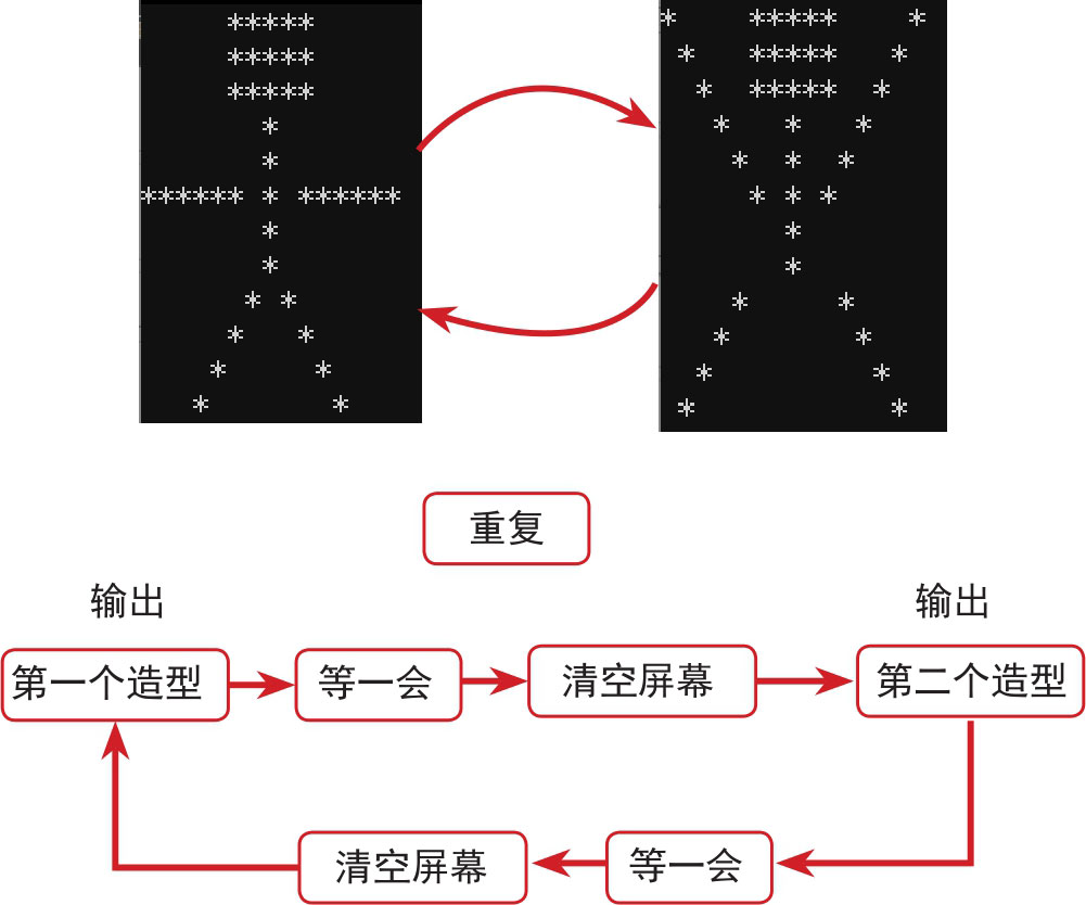 (2) Sleep(100): 让输出的画面停留一会,再切换到下一个画面。尝试修改数值 100 去体会时间长短的变化。