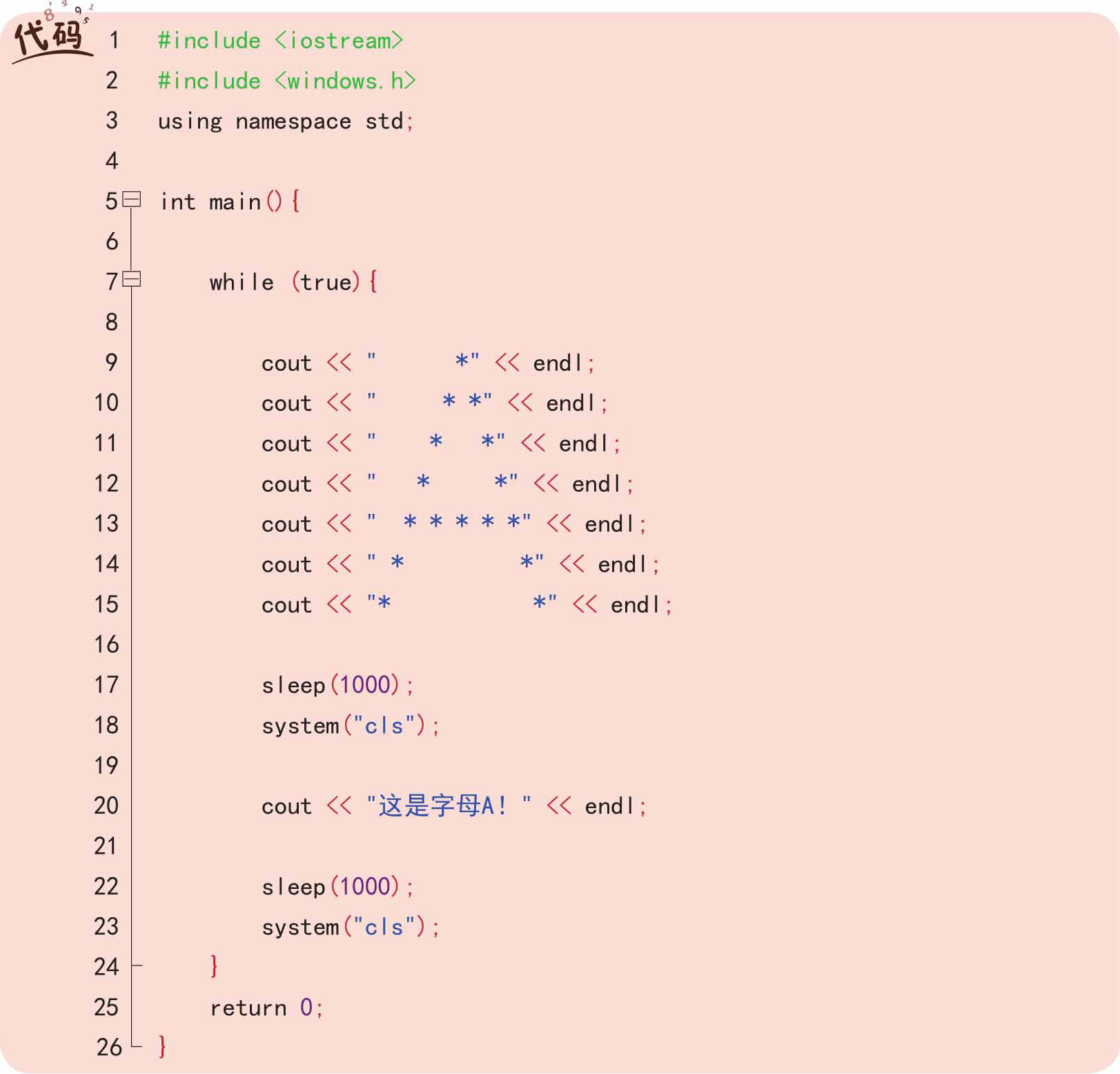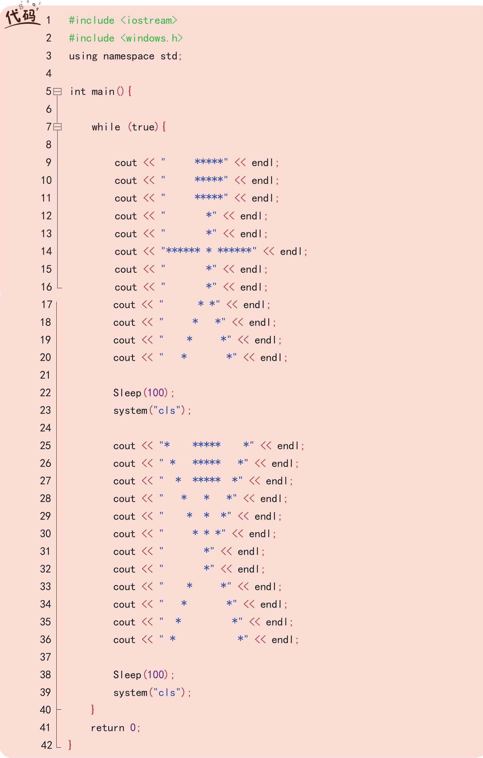 (1) #include <windows.h> :windows.h文件中包含了许多用来操作Windows操作系统的指令和信息,我们将它包含进来是为了能够使用 Sleep() 函数。