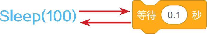Sleep(100) 表示让程序等待了0.1秒。如果你学过Scratch,那么看看Sleep()和 等待0.1秒 积木块是不是有点类似。