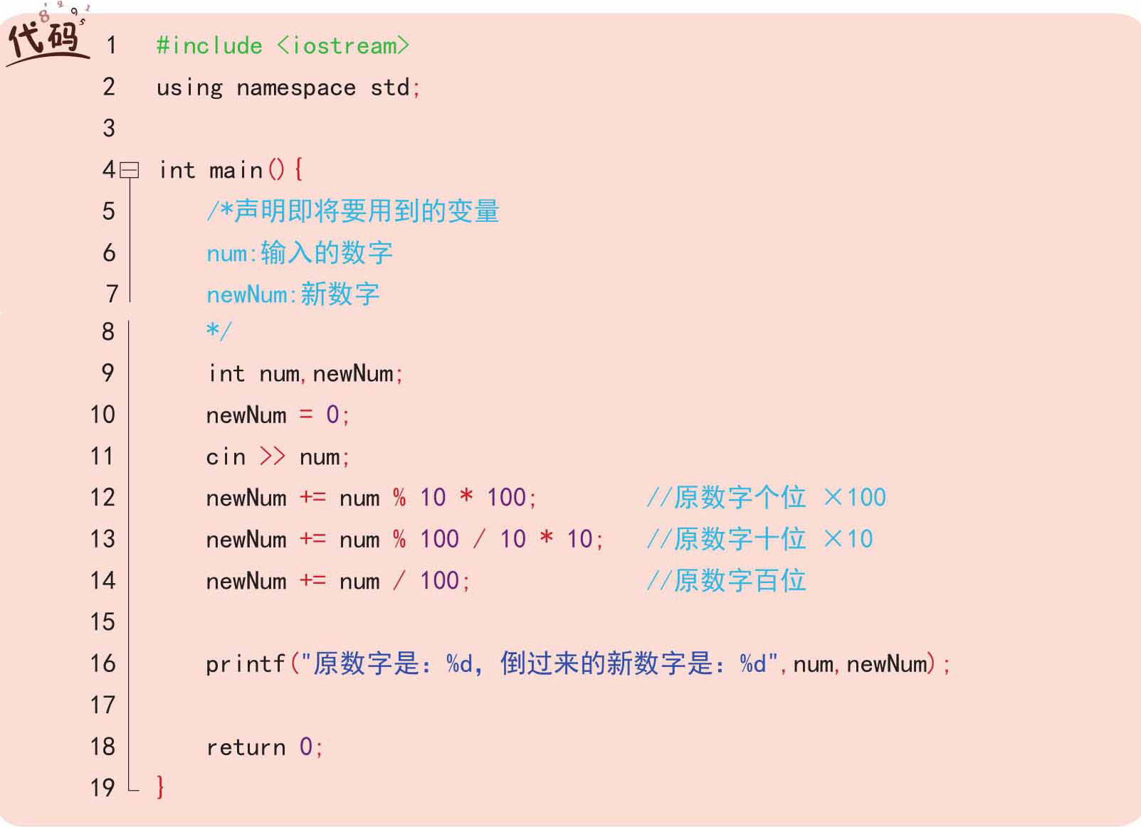 例如:123拆成1、2、3,新数字 = 3 × 100 + 2 × 10 + 1 =321。