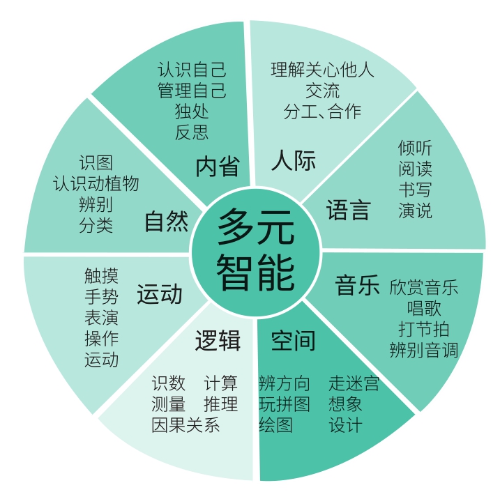 每个孩子在这八种智力里面都有几个不同的天赋领域。家长们不妨先对照一下,看看你家孩子的天赋在哪里。