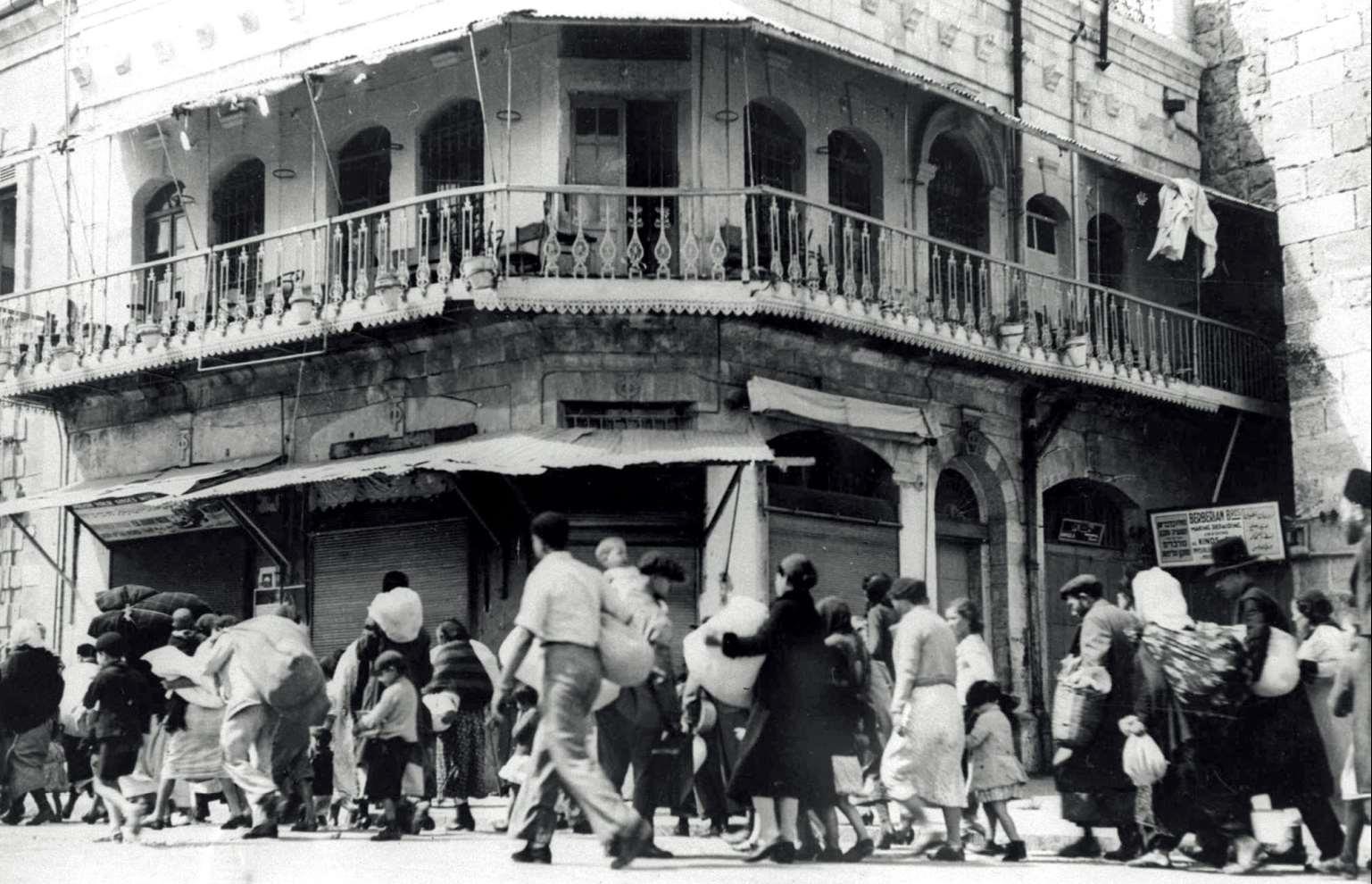 英国士兵护送犹太平民走出耶路撒冷旧城的犹太居住区。之前,这里遭受了袭击。两个年纪较大的犹太人和一位犹太教士被枪杀