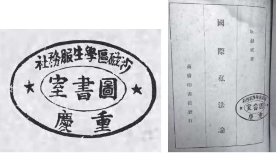 二号章上所刻字为“重庆沙磁区学生服务社图书室”,这是一段特殊历史的见证:“沙磁区”。
