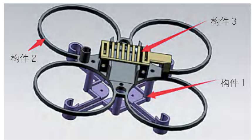 成都航空职业技术学院 2017 级航空材料精密成形专业学生游豪采用UG软件对一种小型四旋翼无人机框架进行了建模、优化设计及FDM打印,采用轻量化和一体化设计理念将四旋翼无人机框架总零件数减少到 3 个,成形过程中无支撑或少支撑,3 个零件一版成形,获得“一种基于 3D打印的无人机框架”,实现新型专利授权,如图 1.1.24、图 1.1.25 所示。