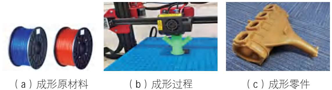FDM技术是目前应用较为广泛的 3D打印技术,也是迄今为止较容易获取的 3D打印工艺。FDM 3D打印技术根据数字模型预设的轨迹,自下而上逐层构建出具有复杂结构、优秀的机械性能的塑料零件,让人们头脑中的创意转变为真实的零件,让人们的梦想更加接近现实(图 1.1.5)。