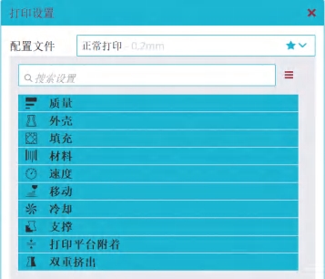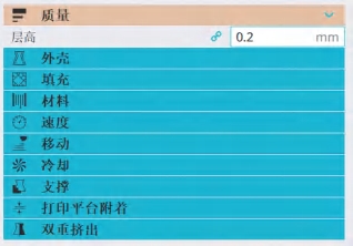 FDM成形过程中影响打印零件质量的参数较多,大体可以分为如图1.1.18所示几个方向,其中常用的参数包括层高、喷嘴温度、挤出速度、填充比例等。