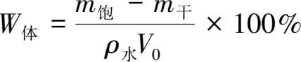 ②体积吸水率是指材料吸水饱和后,吸收水分的体积占干燥材料体积的百分数。其计算式为