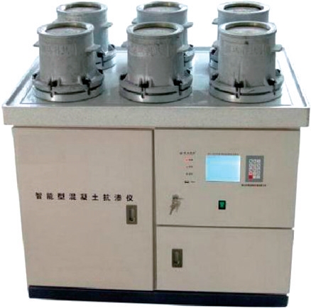 抗渗等级是指材料在标准实验方法下进行的透水实验,以规定的试件在透水前所能承受的最大水压力来确定,用 P 和材料透水前能承受的最大水压力表示。试验仪器如图2.10所示。如P4,P6,P8等分别表示材料能承受0.4,0.6,0.8 MPa的水压不渗水。材料抗渗等级越大,其抗渗性越好。建筑中常用的混凝土、砂浆的抗渗性用抗渗等级表示。