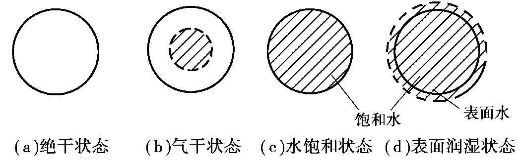 ④表面湿润状态:材料孔隙中充满水达到饱和,表面也被水润湿并附有一层水膜。