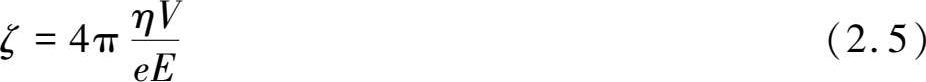 式中, η 为混悬剂的黏度; V 为微粒电泳速度; e 为介电常数; E 为外加电强度。测出微粒的电泳速度,即能计算出 ζ 电位。