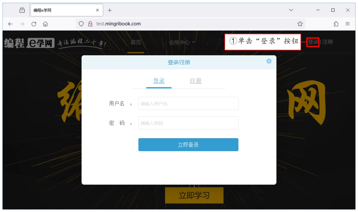 (1)在火狐浏览器中打开网页后,单击网页右上角的“登录”按钮,此时将弹出如图2.10所示的登录窗口。