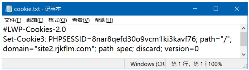 程序运行完成以后,将自动生成一个cookie.txt文件,文件内容如图2.14所示。