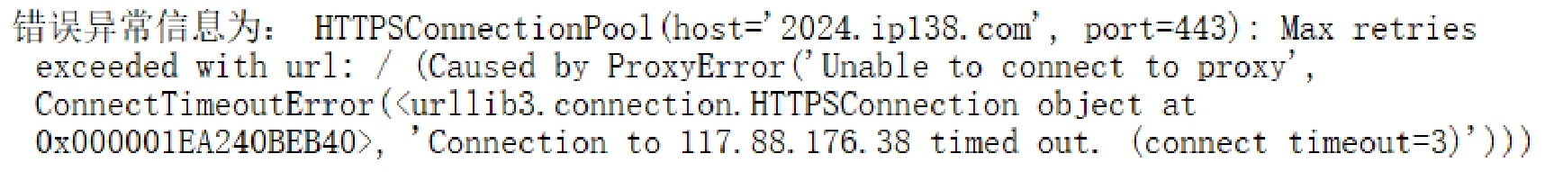图3.17 代理IP地址失效或错误所提示的异常信息
