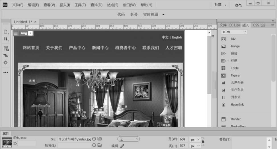 利用Dreamweaver可以进行网页排版布局、添加各种网页特效,还可以轻松开发出动态网页。图1-12所示为利用Dreamweaver制作网页的界面。
