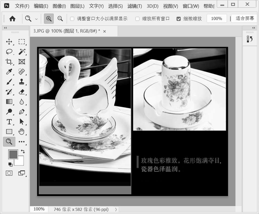 网页中如果只有文字,则缺少生动性和活泼性,会影响视觉效果和整个页面的美观性,因此图片是网页的重要组成元素之一。使用Photoshop可以设计出精美的网页图片。Photoshop是业界公认的图形图像处理“专家”,也是全球性的专业图像编辑行业标准。图1-13所示为利用Photoshop处理网页图片的界面。