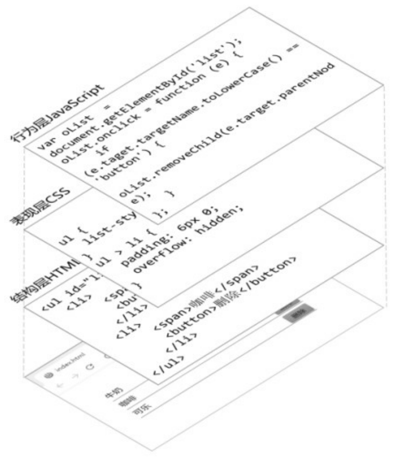 图1-8 HTML、CSS与JavaScript的关系