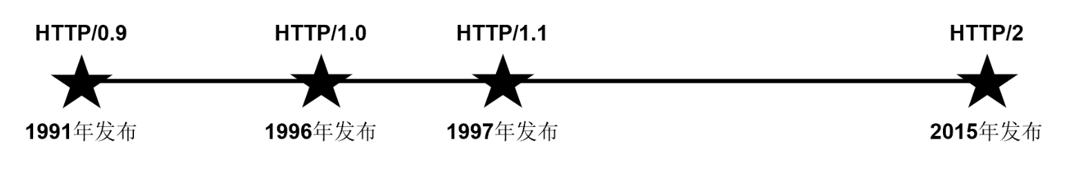 HTTP(HyperText Transfer Protocol,超文本传输协议)是Web的基础协议,也是在互联网上应用得较为广泛的一种协议,我们通常将其称为HTTP协议。最初设计HTTP的目的是提供发布、接收HTML页面的方法,后来它逐渐发展为客户端浏览器或其他程序与服务器端之间的通信协议。HTTP发展经历了一些版本上的变化,其版本发展历程如图1-2所示。值得一提的是,HTTP/1.1是使用得较为普遍的一个版本。
