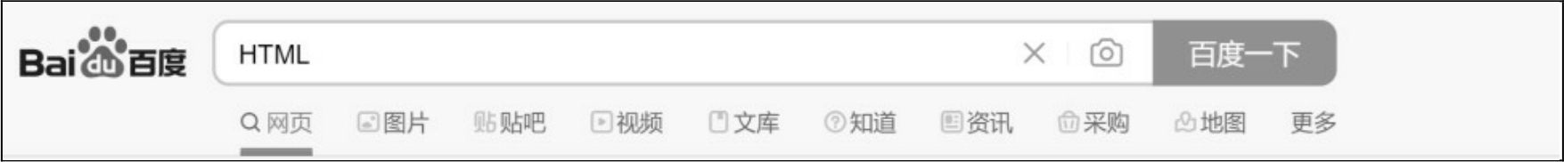 以百度为例,在搜索栏中输入HTML,如图1-4所示,显示出来的是与HTML相关的内容;同理,在搜索栏中输入CSS,显示出来的将是与CSS相关的内容。从页面结构上来看都是一样的,但是其中的内容已经因用户输入关键字的不同而显示得不同。