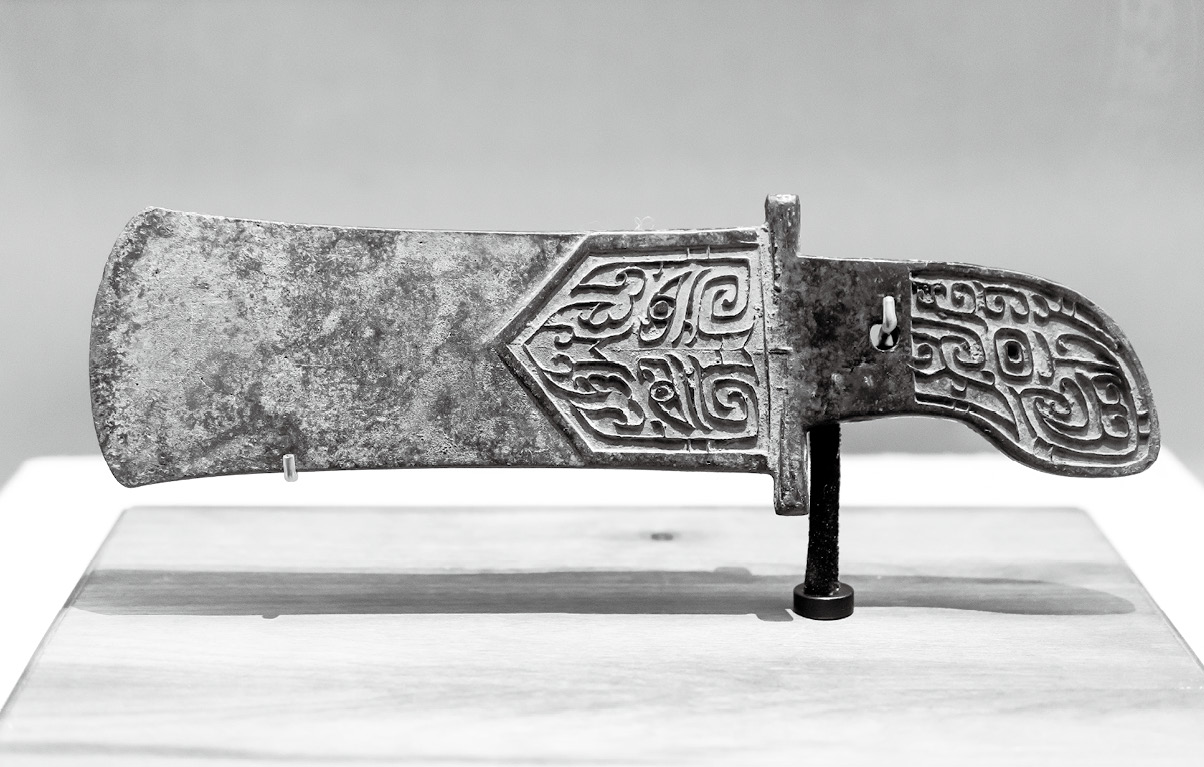 青铜器的制作主要是为了日常使用,但也常用来殉葬。现在保存下来的青铜器,几乎都是从古代坟墓中得到的。从殉葬的情况也可以推测日常使用的情况,譬如在古代,往往一件炊煮器、一件食器、一件贮酒器构成一组,就代表了一个人多方面的生活需要。所以古墓中发现成套的器皿对于研究古代生活很有帮助。古代制作铜器是隆重的事情,例如祭祀、赏赐、战争、征伐、嫁女等等。但也有些青铜器制作时是以装饰为目的的,例如特别华丽的一些兵器(图1)。