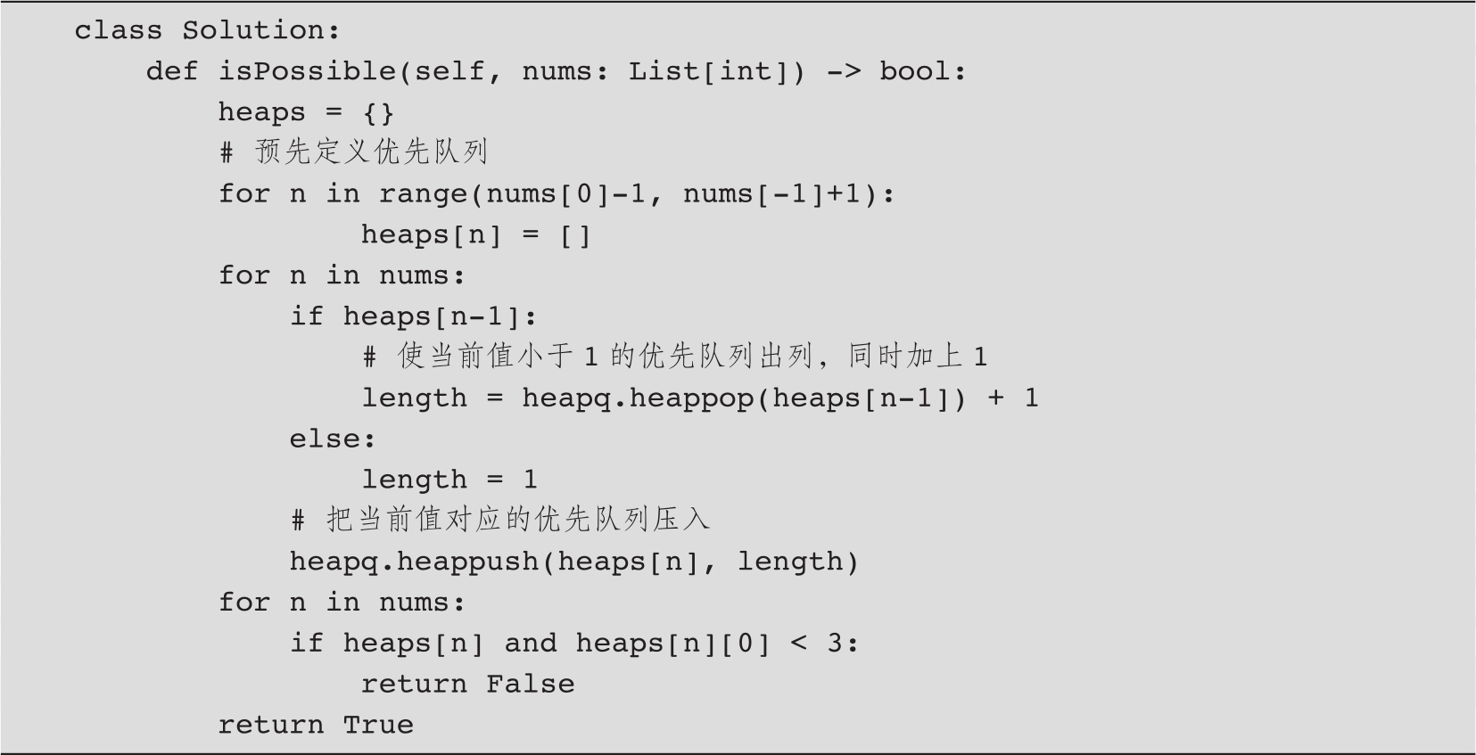 代码清单5-5 判断数组是否可以拆分为连续的子序列
