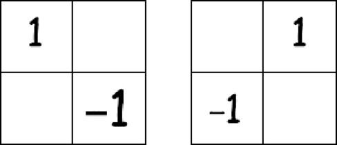 在数字图像梯度运算过程中,可用一阶差分代替一阶微分,Roberts算子为