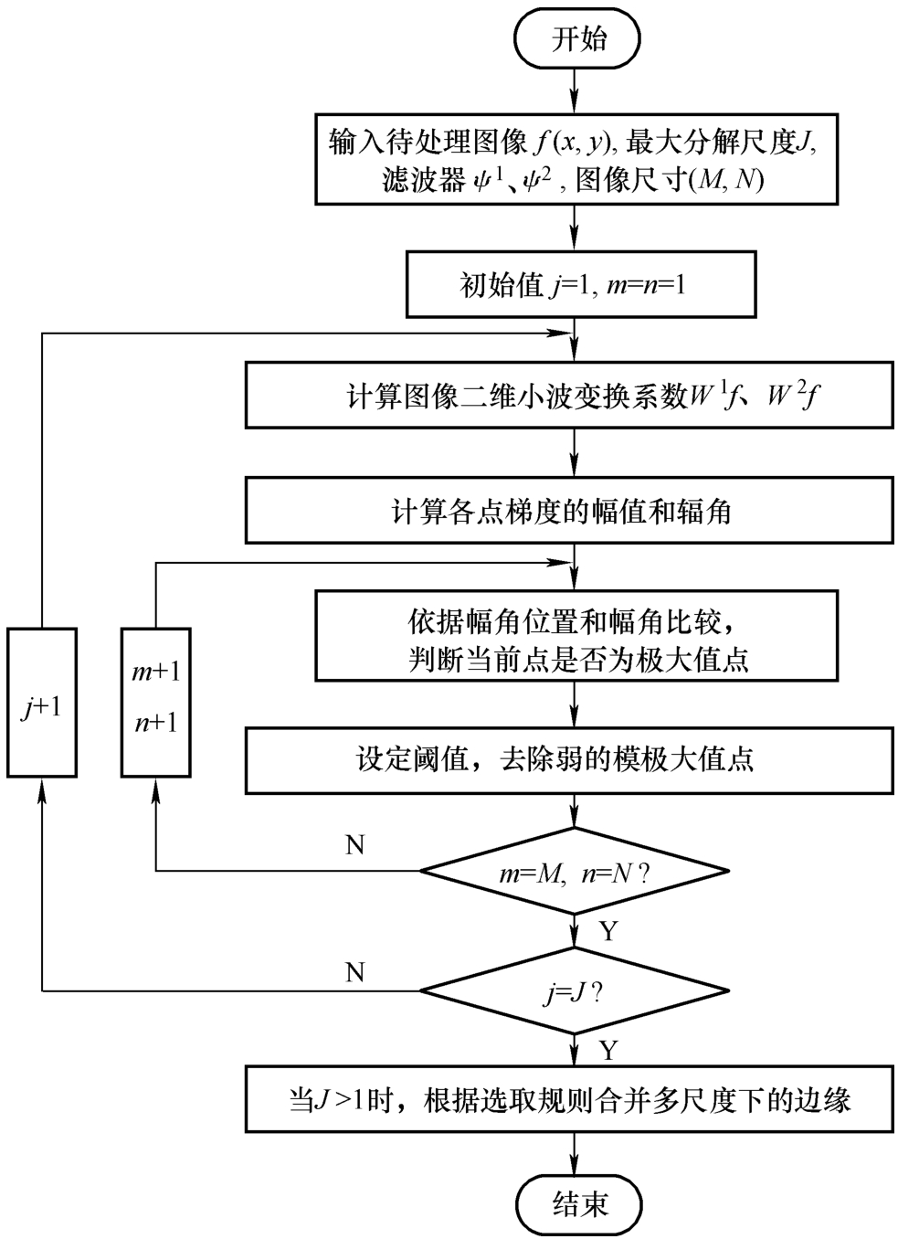 首先定义二维平滑函数,并将其水平和垂直方向的一阶偏导数作为用于图像变换的两个基本小波,然后将两个基本小波的伸缩小波与图像的卷积分别定义为小波变换的水平和垂直分量,并根据此求出小波变换的模和辐角,把图像边缘定义为沿相角方向的小波变换模极大值,建立二维小波变换模极大值与图像边缘点之间的对应关系。