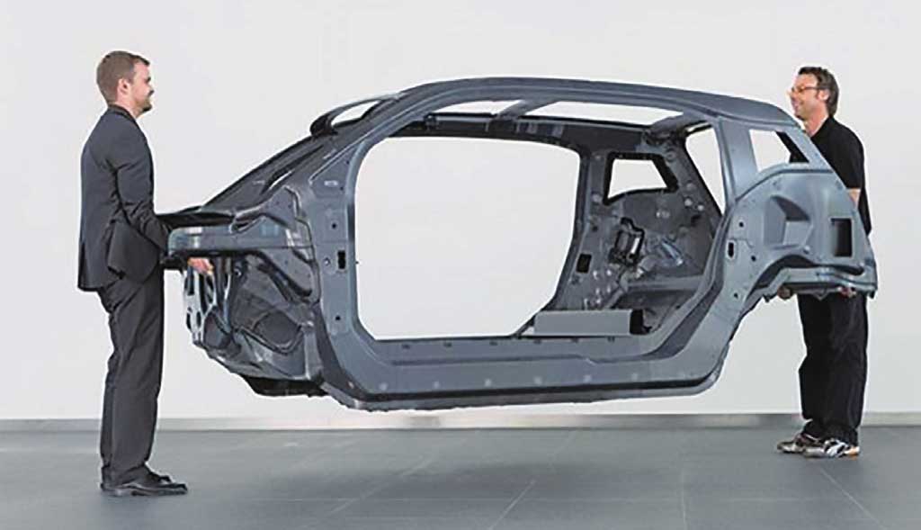 图1-17 两名成年男子可轻松抬起宝马i3的车身框架