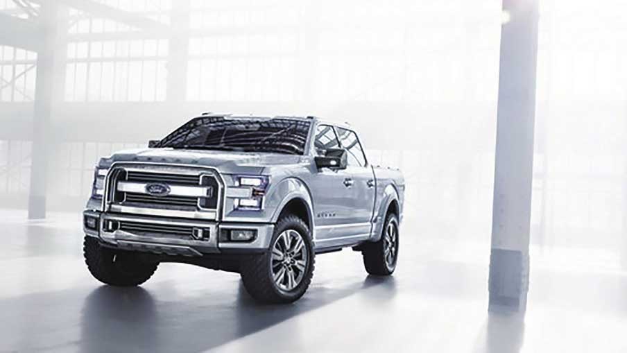 图1-15 2015年福特F-150推出了全铝车身款,其车重同现款车型相比降低了220~320kg,燃油经济性提升20%