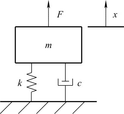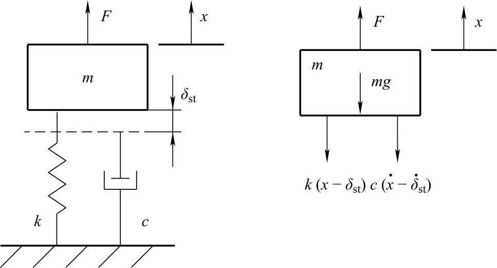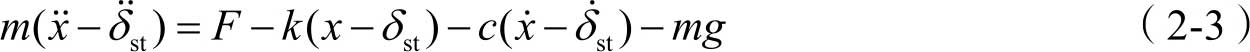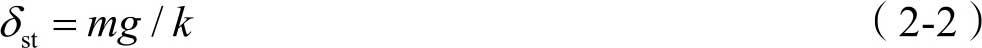 如图2-4所示的振动系统,弹簧和阻尼器垂直放置,系统受到重力的影响,弹簧被压缩或伸长,其静变形量 δ st 为